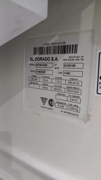 - Capacidad en volumen: 390 L